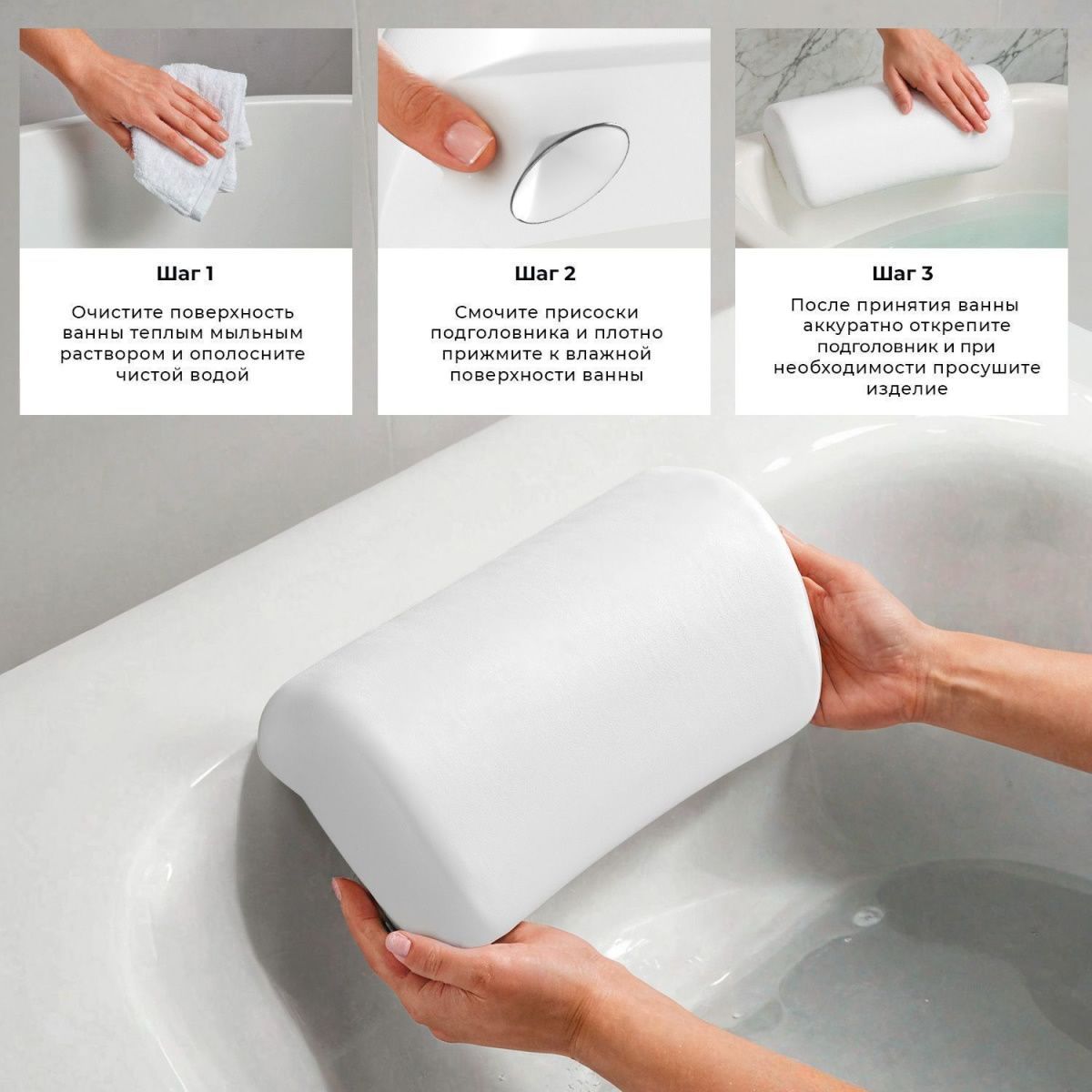 Полиуретановый подголовник адаптируется к анатомическим изгибам тела, исключает неприятные ощущения от контакта с твердым бортиком ванны и способствует глубокой релаксации. Термопластичный материал равномерно распределяет давление, создает идеальную поддержку шейным позвонкам и превращает простое купание в настоящее спа-наслаждение.