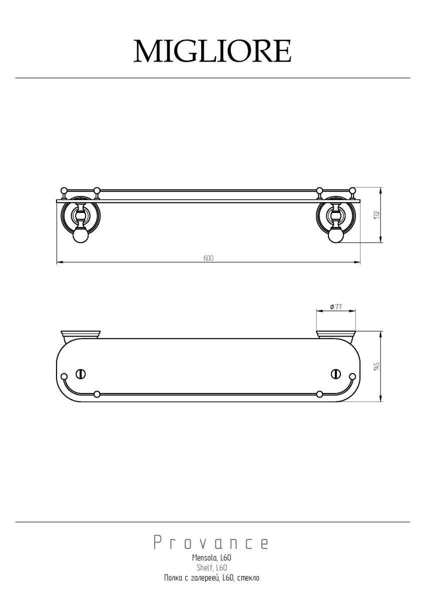 Аксессуары коллекции PROVANCE бренда MIGLIORE имеют нежный цветочный декор на керамике и создают уют в ванной комнате в классическом или рустикальном стиле. Полка с галереей коллекции PROVANCE длиной 60 см — это функциональный аксессуар для ванной комнаты в классическом стиле. Полка вешается над раковиной. На ней можно разместить все необходимые косметические средства, которые будут всегда у вас под рукой.  Ограничительпо переднему краю полки не позволит упасть тюбикам и предметам. Стекло легко чистится тряпочкой и/или средством для чистки стекол.