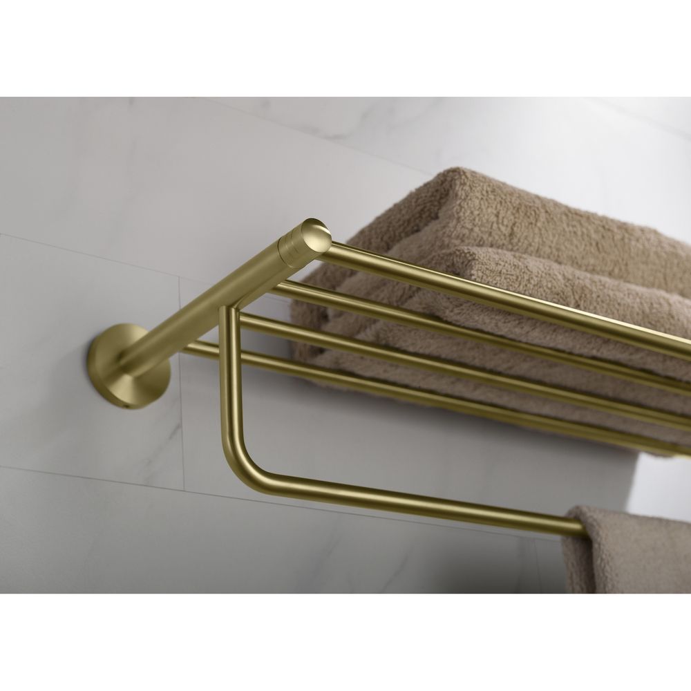 Цвет "матовое золото" никогда невыйдет из моды, во все времена драгоценный металл был признаком богатства.Полка Timo Saona 13058 - практичный аксессуар, который дополнит интерьер в ванной комнате. Для сушки полотенец используют нижнюю перекладину, а верхняя полка является удобным местом для их хранения.Аксессуары для ванной комнаты и туалета - важные составляющие комфортной и продуманной обстановки.