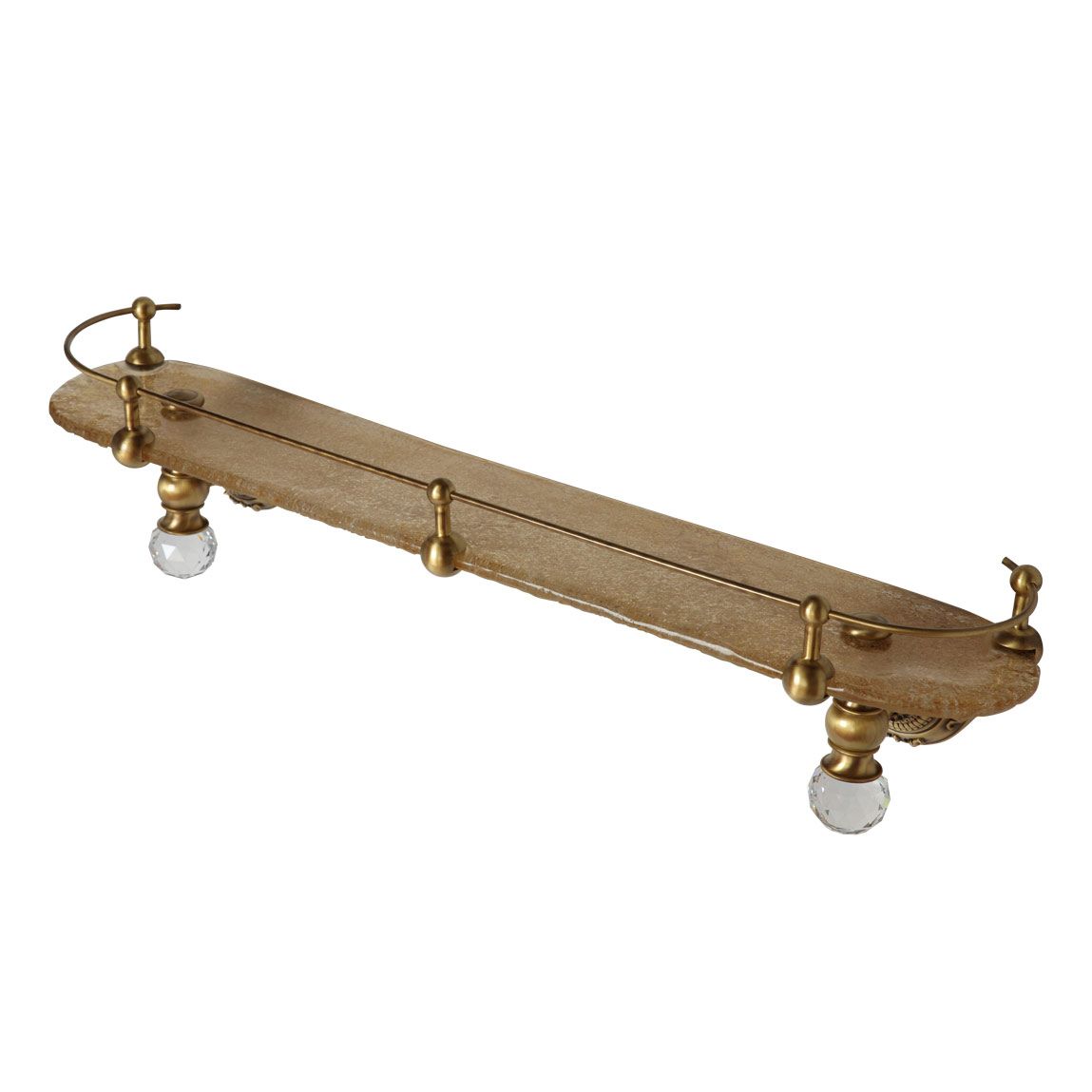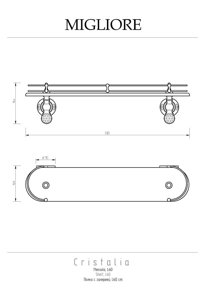 Полка с галереей коллекции CRISTALIA бренда MIGLIORE  - незаменимый аксессуар для ванной комнаты в классическом стиле. На ней вы сможете разместить все необходимые косметические средства, которые будут всегда у вас под рукой. Ограничитель по переднему краю полки не позволит упасть тюбикам и предметам.  Стекло полки изготовлено вручную с добавлением фольги из золота, которая, растворяясь в стекле, образует богатый и красивый декор. Аксессуар украшен кристаллами Сваровски.