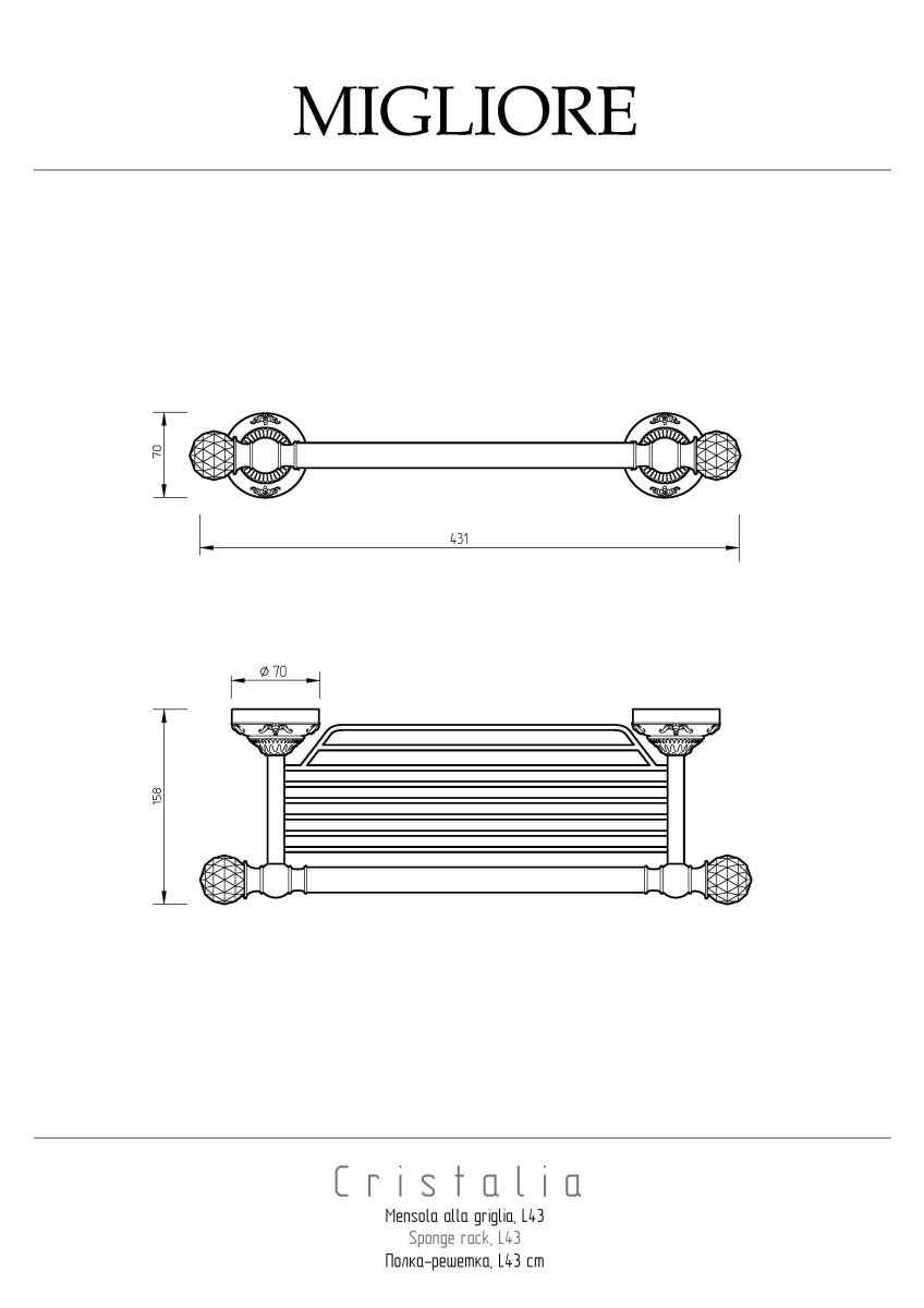 Полка-держатель для полотенец коллекции CRISTALIA бренда MIGLIORE — это удобный аксессуар для ванной комнаты или сауны. Аксессуар украшен кристаллами Сваровски.