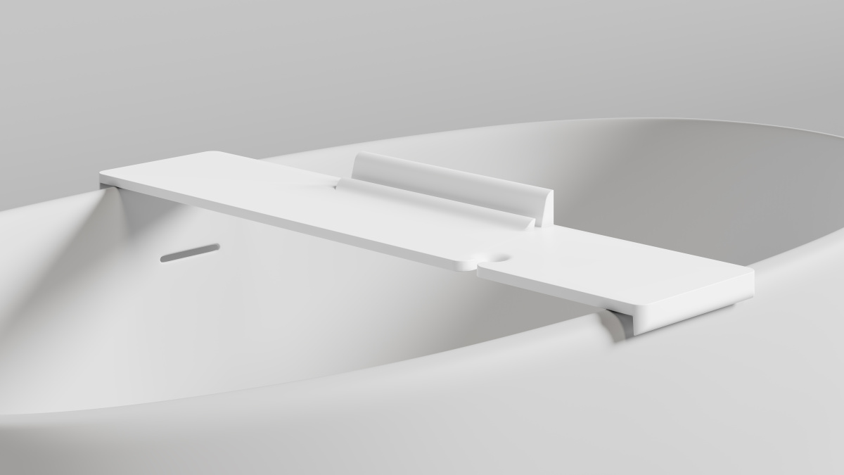 Миниатюрные «крылья чайки» помогут установить планшет и телефон, а также имеют место для надежного крепления бокала. На полке можно разместить всё, что пожелаете, причем, благодаря боковым фиксаторам полка и её содержимое никогда не соскользнут в воду.