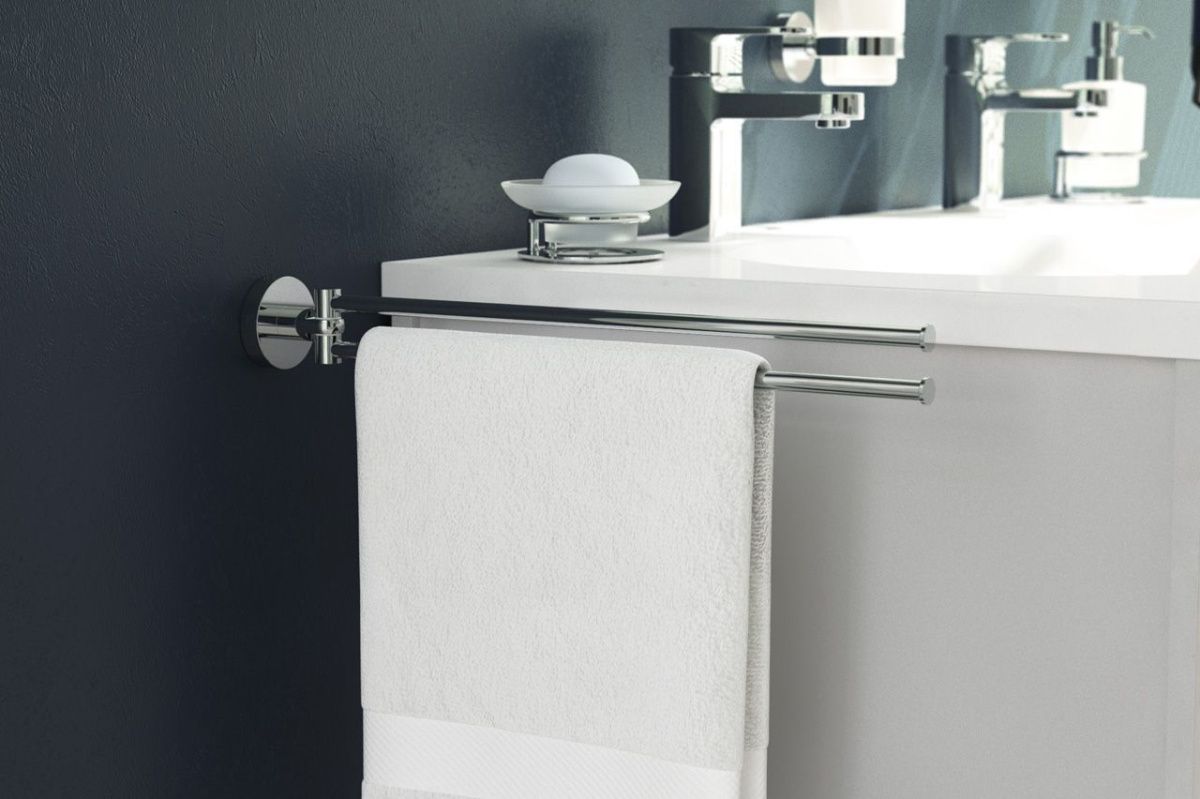 Держатель полотенец поворотный двойной 40 cm торговой марки ARTWELLE коллекции Harmonie, артикул: HAR 023 имеет размер (в мм): Ширина - 399, Высота - 53, Длина - 51, Вес нетто (в граммах): 490, Расположение: Настенное, Крепление: Саморез, Материал: Латунь. Большой срок службы подтверждается 10-ти летней гарантией производителя при условии правильной эксплуатации. Торговая марка Artwelle принадлежит компании Santech Allianz Gmbh. Универсальный дизайн аксессуаров позволяет дополнить практически любой интерьер, а широкий ассортимент предоставляет свободу выбора. Надежность конструкции, профессиональное крепление и прочность покрытия позволяют использовать изделия не только в домашних условиях, но также и в общественных местах, включая отели. В производстве коллекций используются материалы высокого качества, что обеспечивает долговечность изделий.