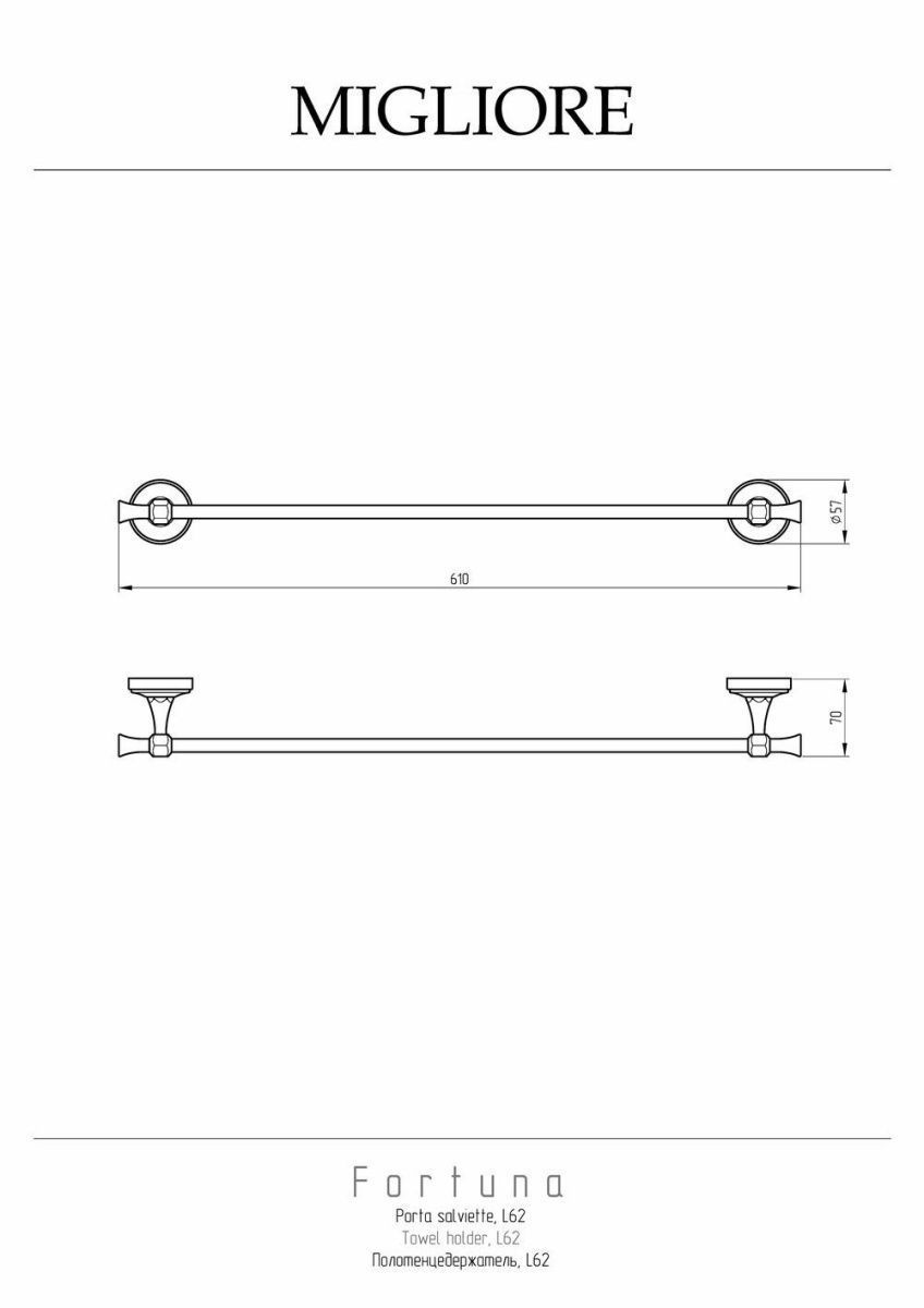 Полотенцедержатель серии FORTUNA бренда MIGLIORE  - функциональный аксессуар для ванной комнаты. Его длина 62 см подходит для полотенца для рук, лица и тела. Изделие выполнено из латуни и имеет высококачественное хромо-никелиевое покрытие, которое при правильном уходе надолго сохранит  свой блеск. Рекомендуется использовать чистящее средство бренда MIGLIORE для смесителей и аксессуаров с хромированным покрытием.