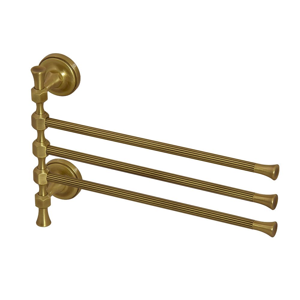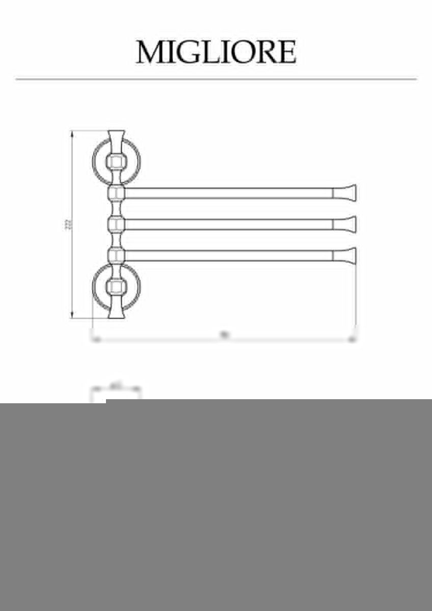 Полотенцедержатель тройной поворотный серии FORTUNA бренда MIGLIORE длиной 32 см очень удобен в использовании. Чтобы повесить его достаточно небольшого пространства, держатели можно развернуть в одну или другую сторону в зависимости от места на стене. Материал — латунь, покрытие цвета бронза. Внимание: бронзовое покрытие достаточно деликатное и для ухода рекомендуется протирать изделие мягкой безворсовой тряпочкой с мыльным раствором и вытирать насухо или использовать чистящее средство бренда MIGLIORE для смесителей и аксессуаров с деликатными покрытиями бронза, золото, медь.