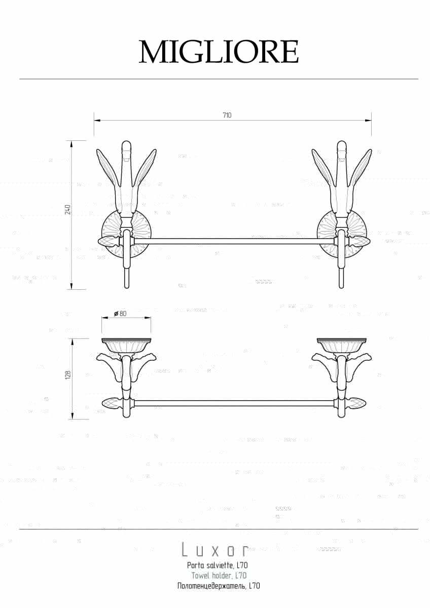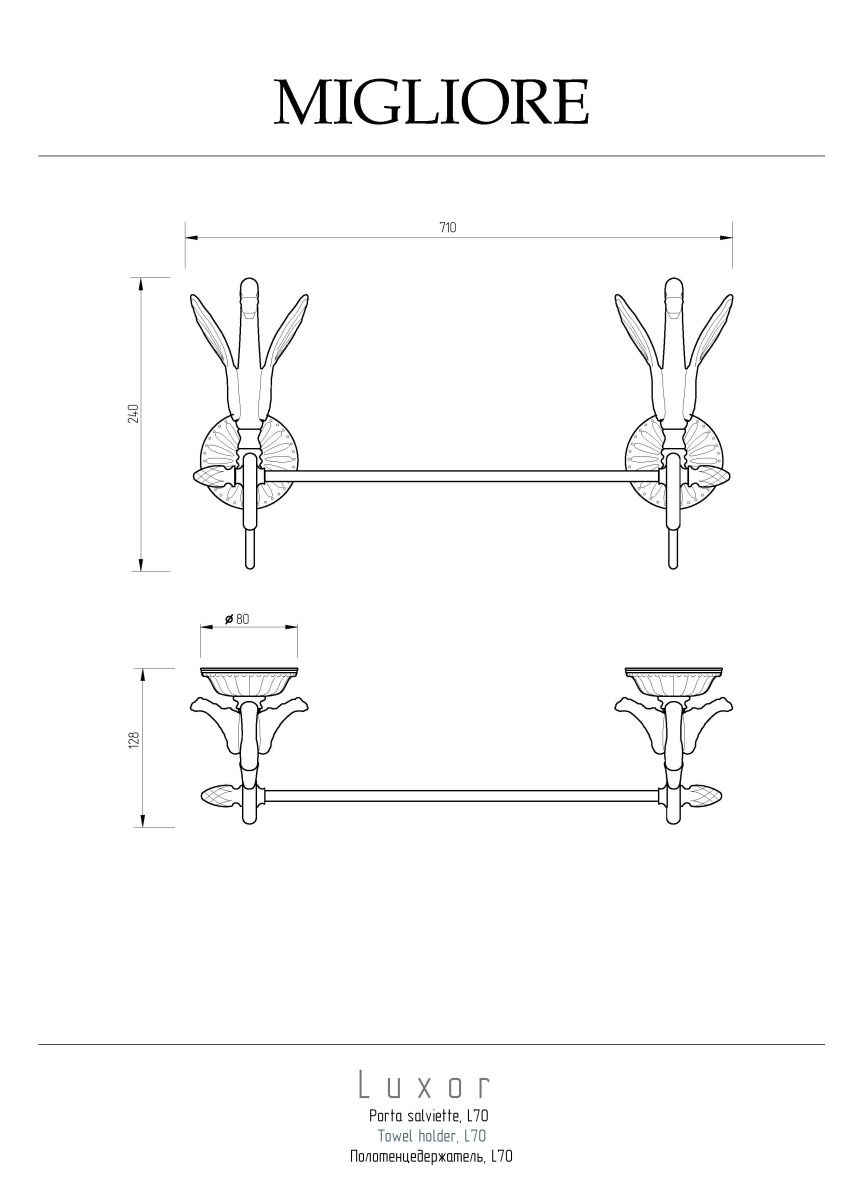 Полотенцедержатель коллекции LUXOR бренда MIGLIORE — один из необходимых аксессуаров для ванной комнаты. Длина полотенцедержателя 70 см, и он подойдет для полотенец среднего и большого размера. Изделие выполнено из высококачественной латуни и имеет гальваническое покрытие золотом 24 карата. Внимание: золотое покрытие очень деликатное и для ухода рекомендуется использовать чистящее средство бренда MIGLIORE для смесителей и аксессуаров с деликатными покрытиями бронза, золото, медь и протирать мягкой ветошью.