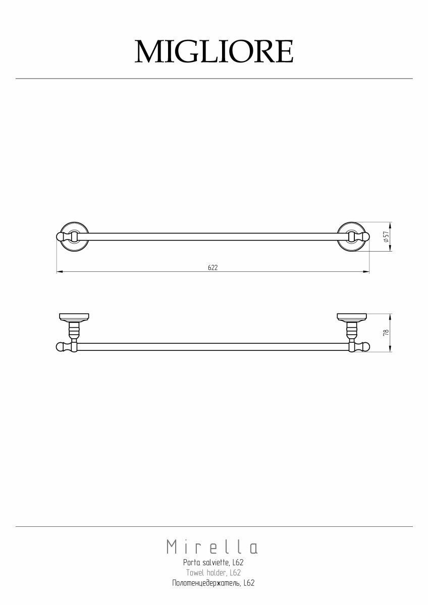 Полотенцедержатель серии MIRELLA бренда MIGLIORE  - функциональный аксессуар для ванной комнаты. Его длина 62 см подходит для любого полотенца для рук, лица или тела. Изделие выполнено из латуни и имеет высококачественное хромо-никелиевое покрытие, которое при правильном уходе надолго сохранит  свой блеск. Рекомендуется использовать чистящее средство бренда MIGLIORE для смесителей и аксессуаров с хромированным покрытием.