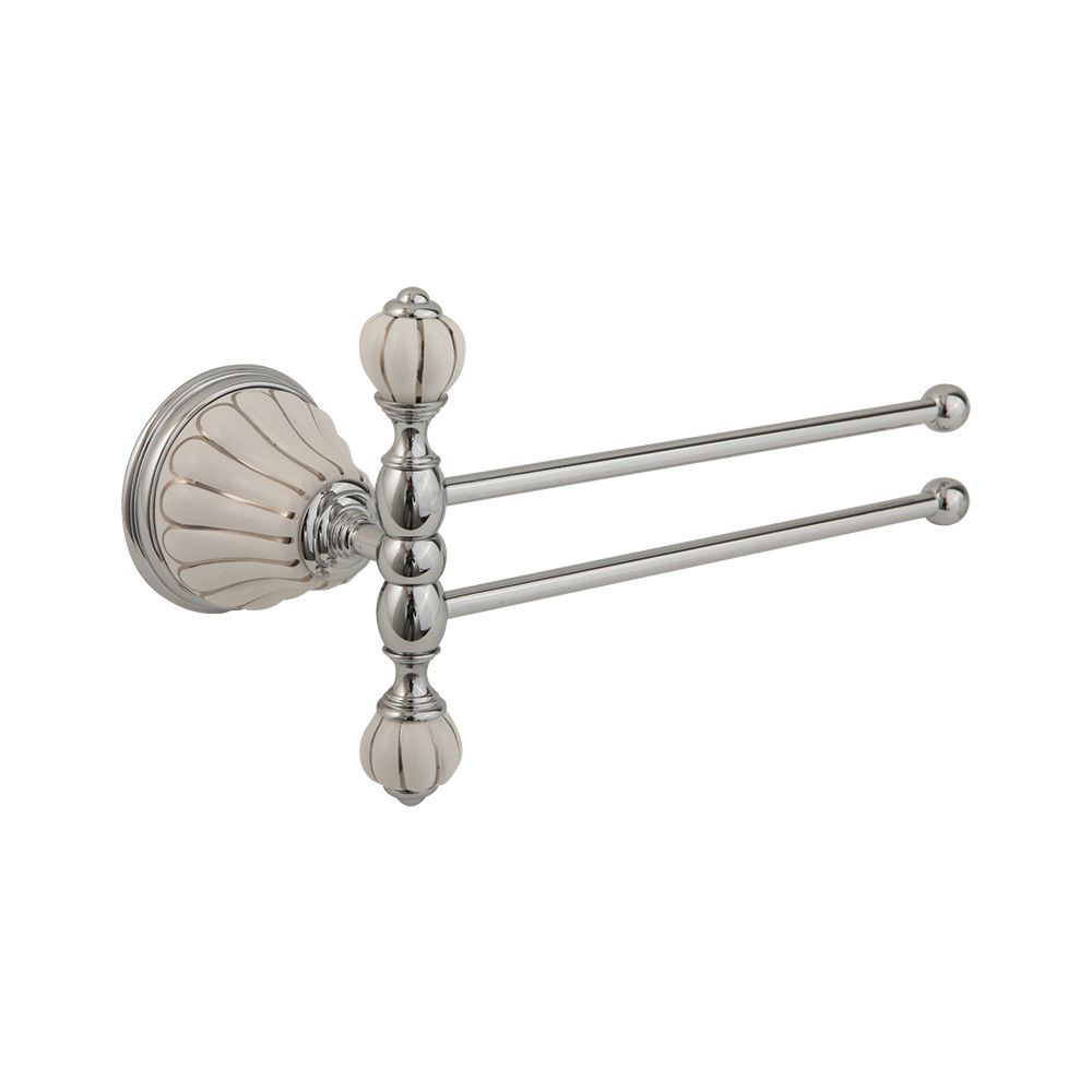 Полотенцедержатель двойной поворотный коллекции OLIVIA бренда MIGLIORE длиной 20 см очень удобен в использовании — для него достаточно небольшого пространства, и  держатели можно развернуть в одну или другую сторону в зависимости от наличия места на стене.