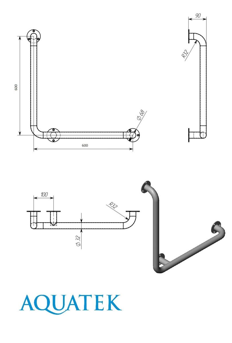 o Материал: нержавеющая сталь AISI 304, диаметр трубы 32х1,5 мм. Толщина металла и диаметр трубы поручня делают его очень прочным;