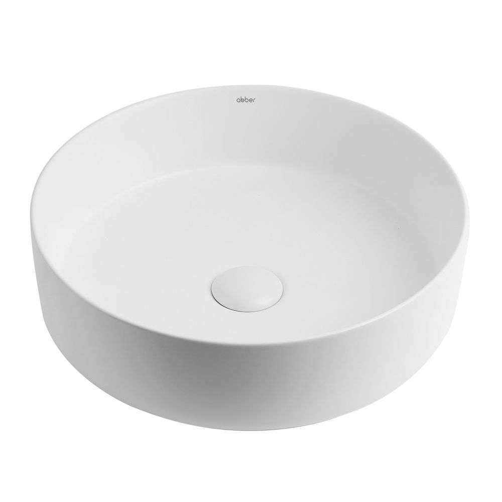 Раковина из сантехнического фаянса Abber BEQUEM AC2109MW 40х40 накладная цвет белый без отверстий под смеситель