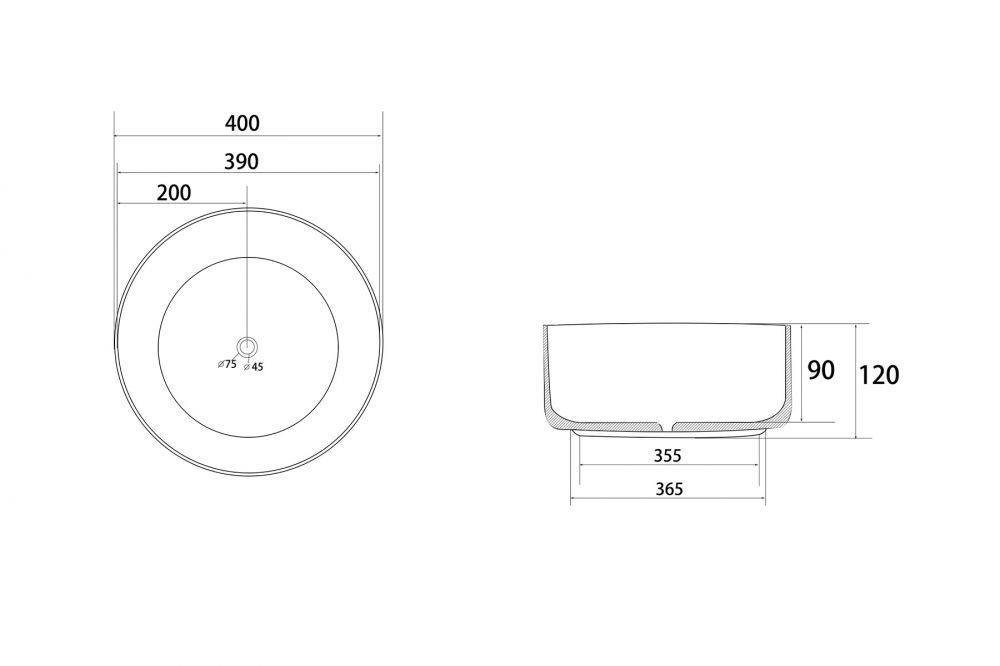 —Раковина из сантехнического фаянса Abber BEQUEM AC2109MW 40х40 накладная цвет белый без отверстий под смеситель