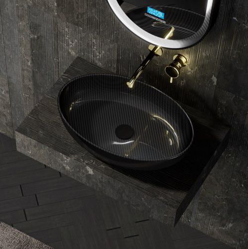 —Раковина карбоновая Abber KARBON AK2041 60х40 накладная цвет черный без отверстий под смеситель