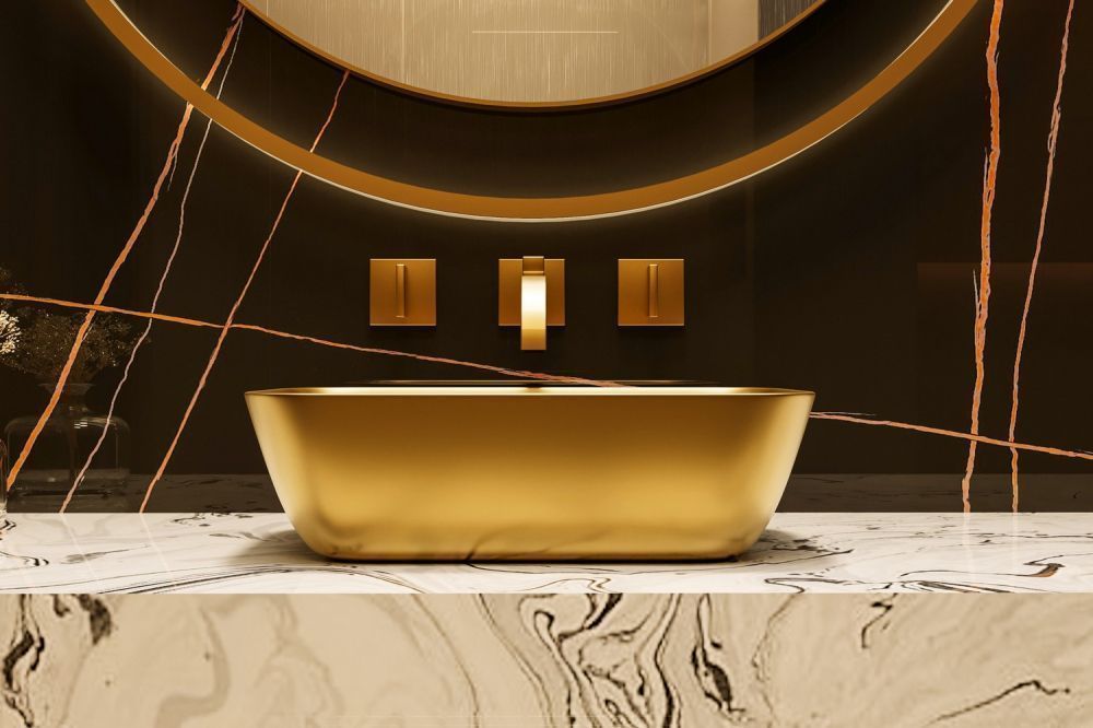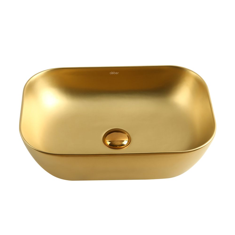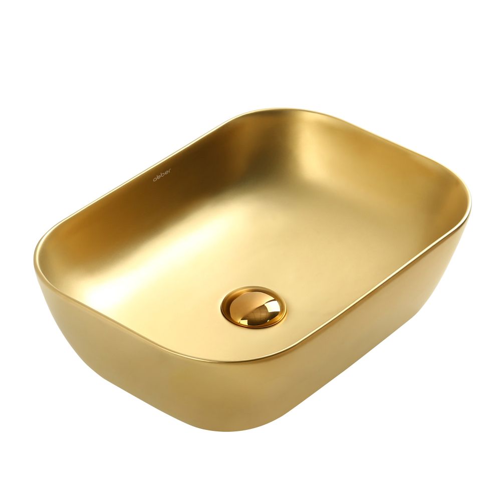 —Раковина из сантехнического фаянса Abber RECHTECK AC2200MMG 50х30 накладная цвет золото без отверстий под смеситель