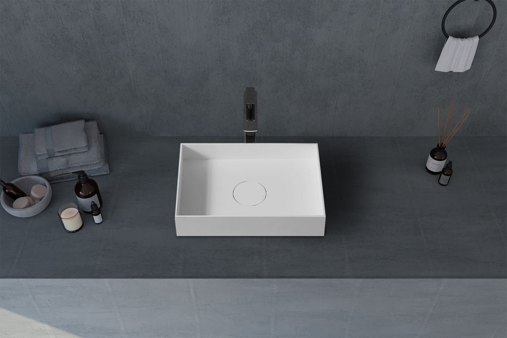 —Раковина из искусственного камня Abber STEIN AS2621 50х40 накладная цвет белый без отверстий под смеситель