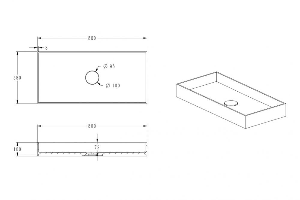—Раковина из искусственного камня Abber STEIN AS2622 80х40 накладная цвет белый без отверстий под смеситель