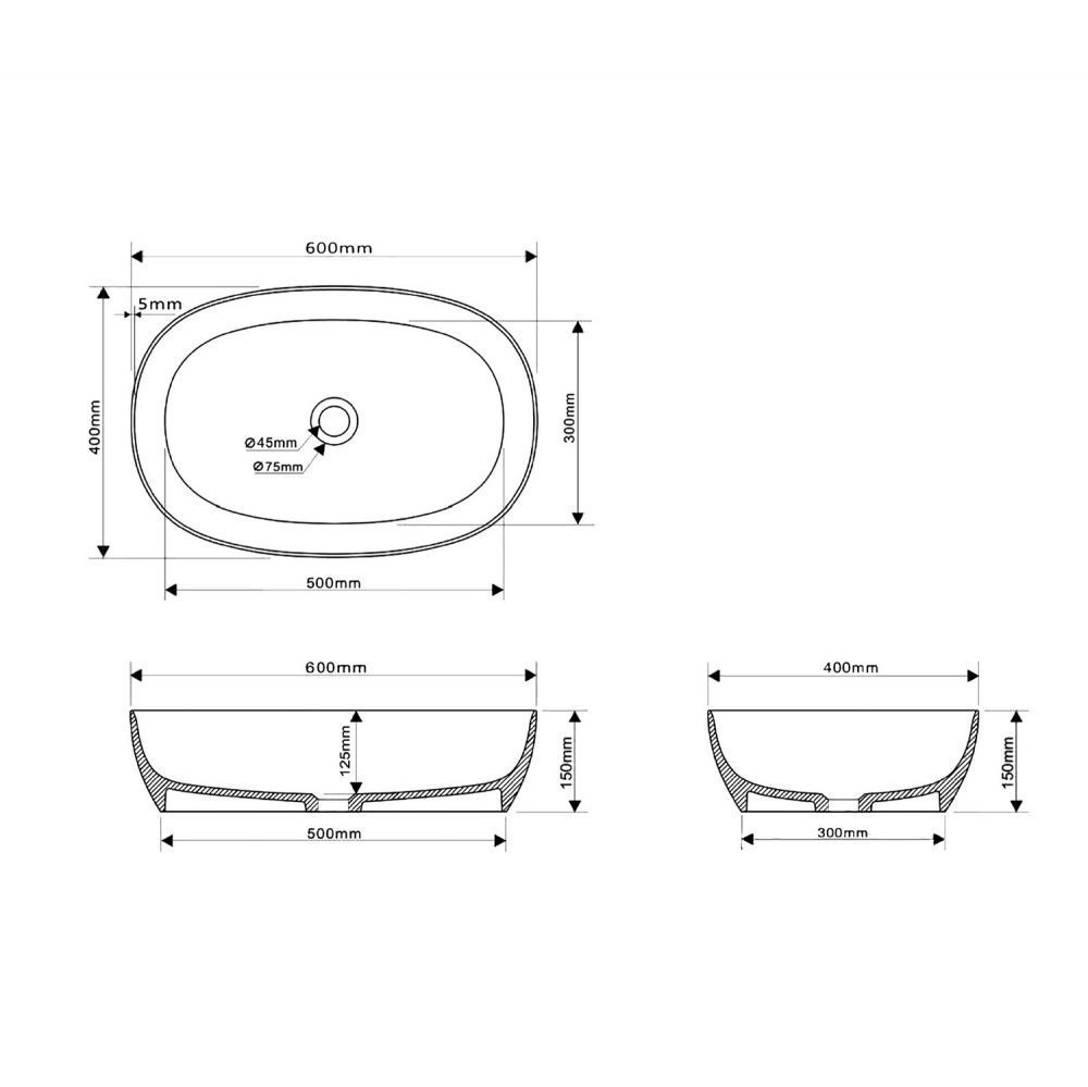 Раковина из искусственного камня Abber Stein AS2633 60х40 накладная цвет белый без отверстий под смеситель