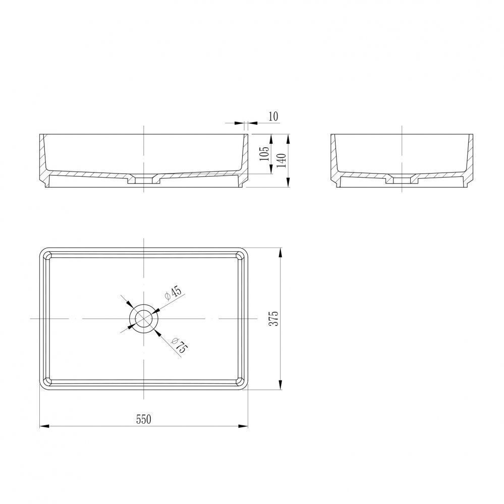 Раковина из искусственного камня Abber Stein AS2634 60х40 накладная цвет белый без отверстий под смеситель