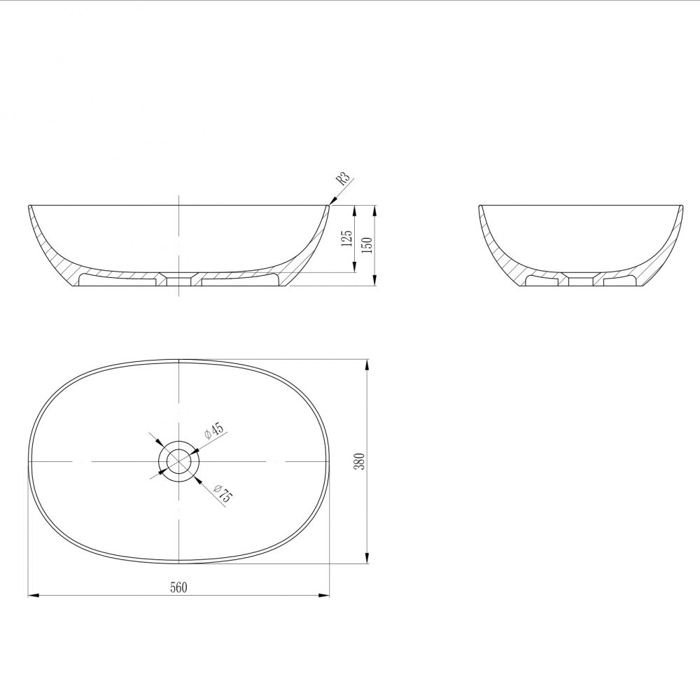 —Раковина из искусственного камня Abber Stein AS2636 60х40 накладная цвет белый без отверстий под смеситель