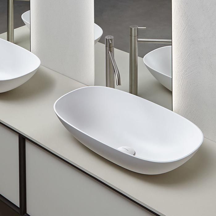 —Раковина из искусственного камня Antonio Lupi Velo VELO63 Bianco 40 см накладная цвет белый без отверстий под смеситель