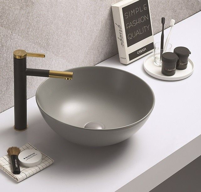 —Раковина из сантехнического фаянса CeramaLux 104MH-5 40х40 накладная цвет серый без отверстий под смеситель