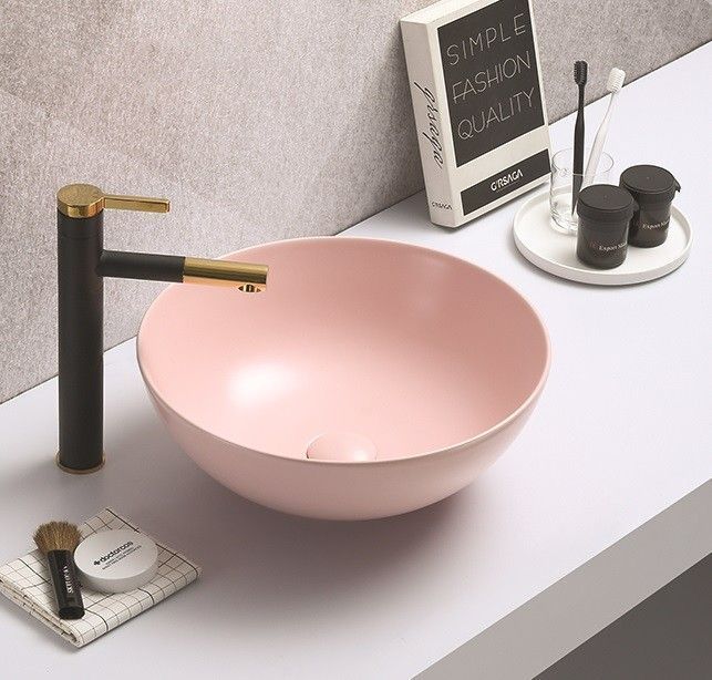 —Раковина из сантехнического фаянса CeramaLux 104MP-3 40х40 накладная цвет розовый без отверстий под смеситель