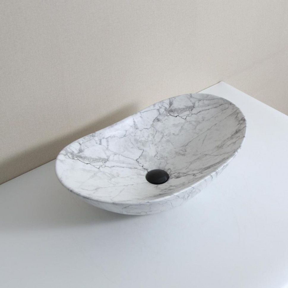 Раковина из сантехнического фаянса CeramaLux 1575 60х40 накладная цвет белый без отверстий под смеситель