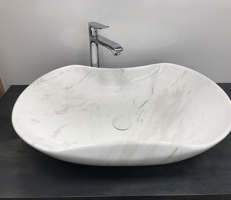 —Раковина из сантехнического фаянса CeramaLux 503H012 70х40 накладная цвет белый без отверстий под смеситель