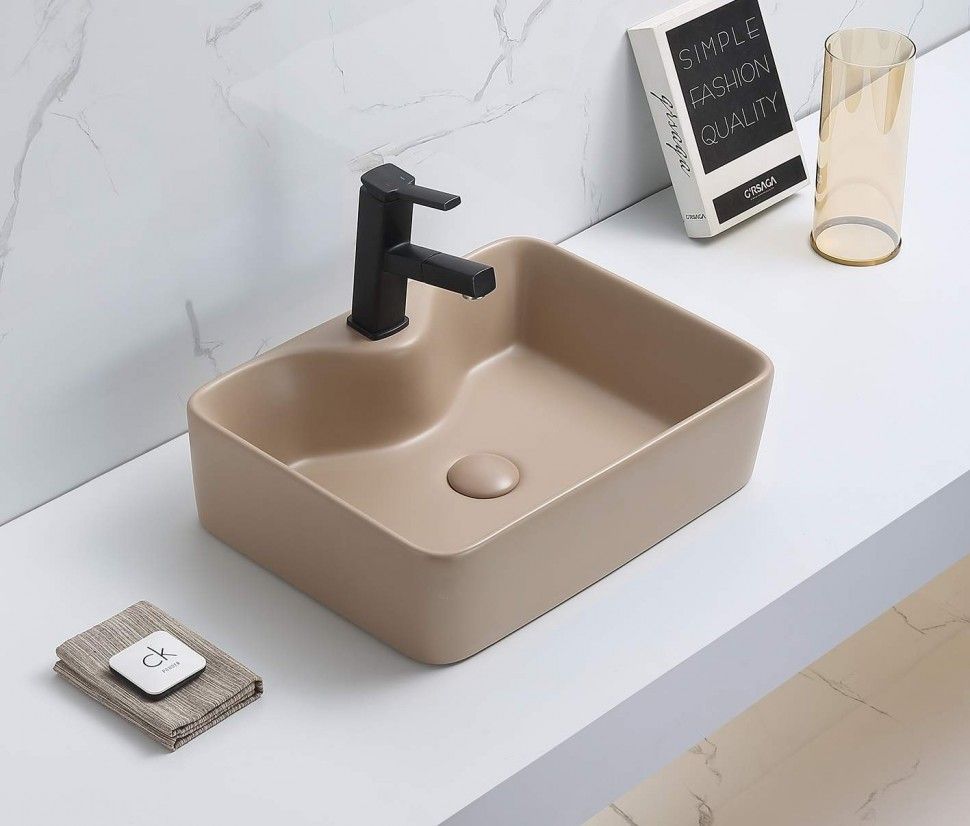 —Раковина из сантехнического фаянса CeramaLux 7291MC-1 50х40 накладная цвет коричневый 1 отверстие под смеситель