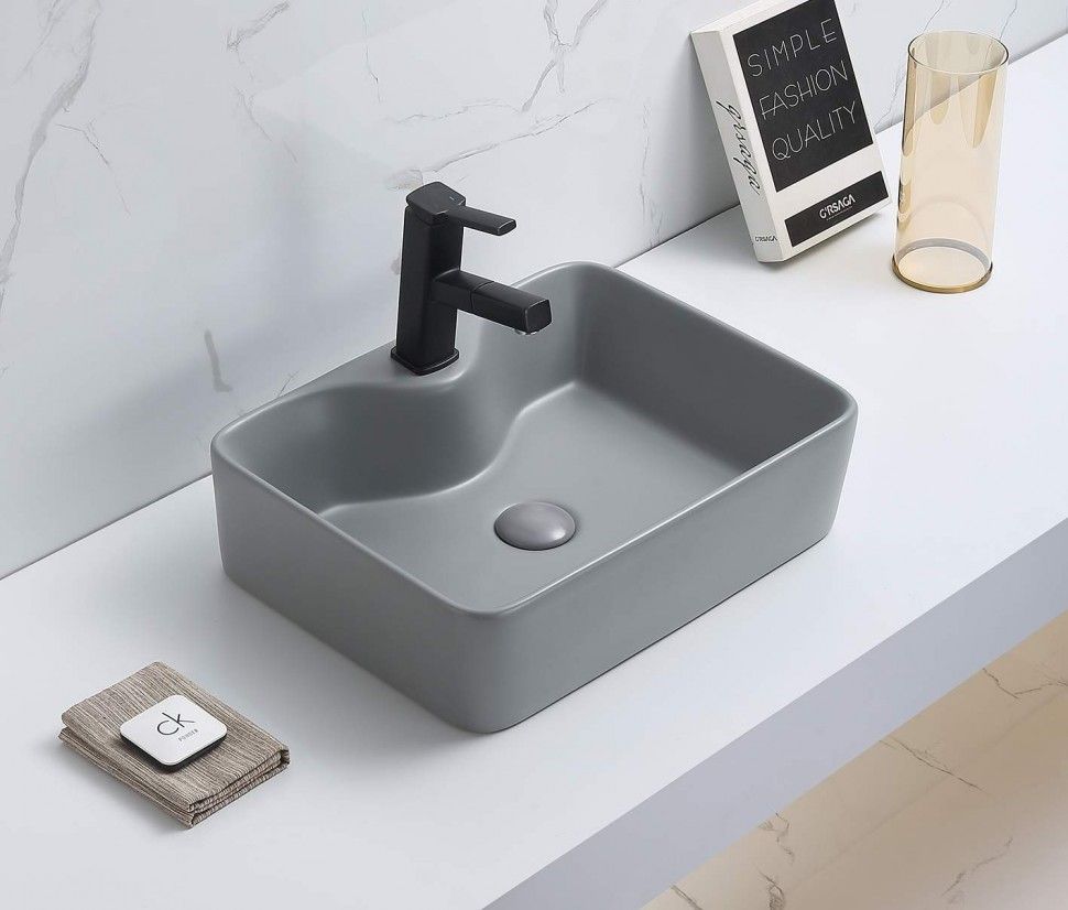 —Раковина из сантехнического фаянса CeramaLux 7291MH-5 50х40 накладная цвет серый 1 отверстие под смеситель