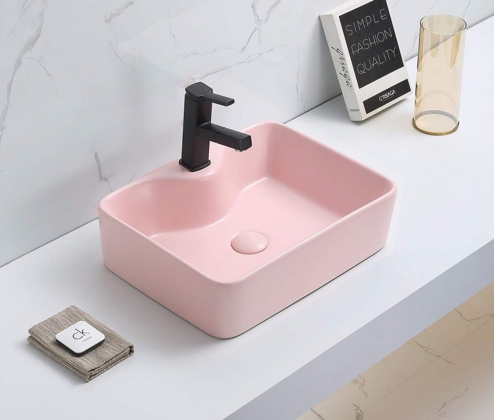 —Раковина из сантехнического фаянса CeramaLux 7291MP-3 50х40 накладная цвет розовый 1 отверстие под смеситель
