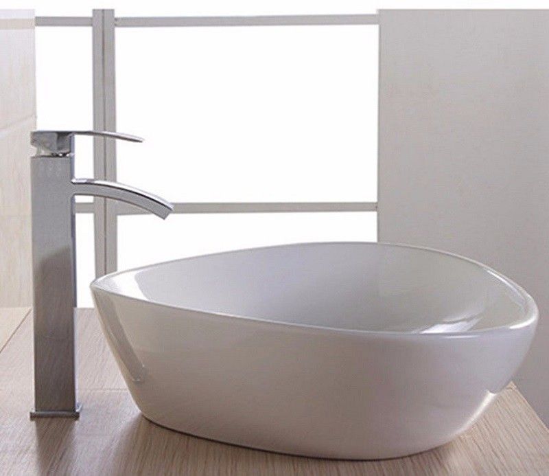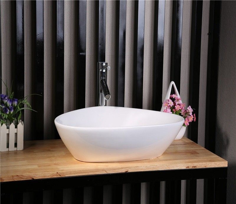 —Раковина из сантехнического фаянса CeramaLux 7472B 60х40 накладная цвет белый без отверстий под смеситель