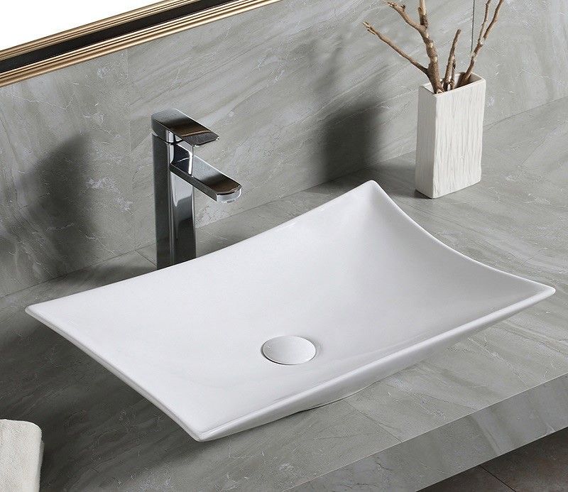 —Раковина из сантехнического фаянса CeramaLux 7701B 60х40 накладная цвет белый без отверстий под смеситель