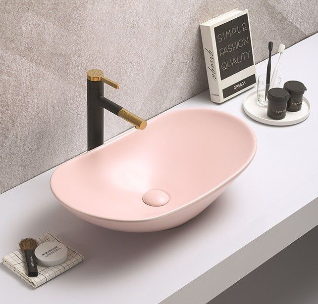—Раковина из сантехнического фаянса CeramaLux 7811AMP-3 60х40 накладная цвет розовый без отверстий под смеситель