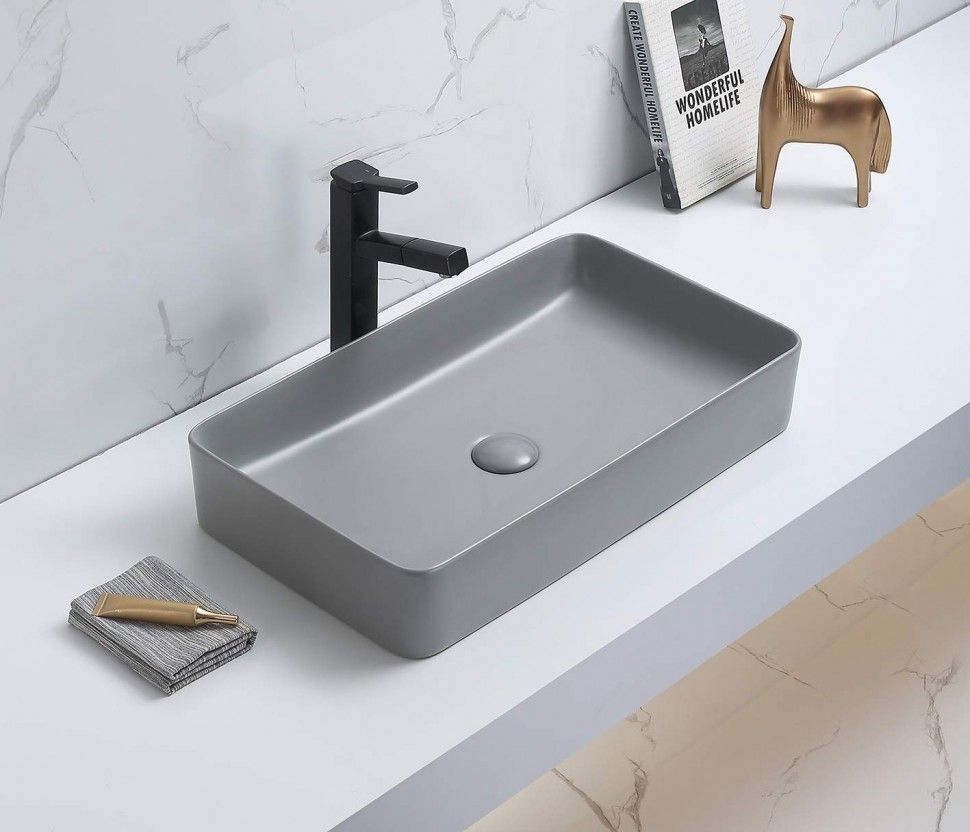 —Раковина из сантехнического фаянса CeramaLux 78189MH-5 60х40 накладная цвет серый без отверстий под смеситель