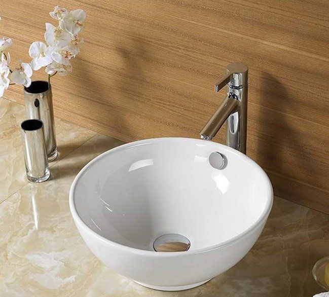—Раковина из сантехнического фаянса CeramaLux 9002 40х40 накладная цвет белый без отверстий под смеситель