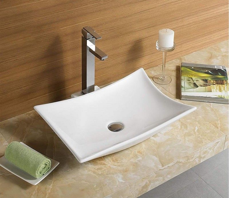 —Раковина из сантехнического фаянса CeramaLux 9176 60х40 накладная цвет белый без отверстий под смеситель