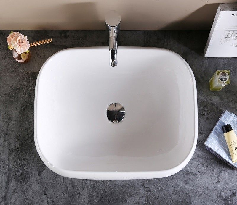 Раковина из сантехнического фаянса CeramaLux 9243 60х40 накладная цвет белый без отверстий под смеситель