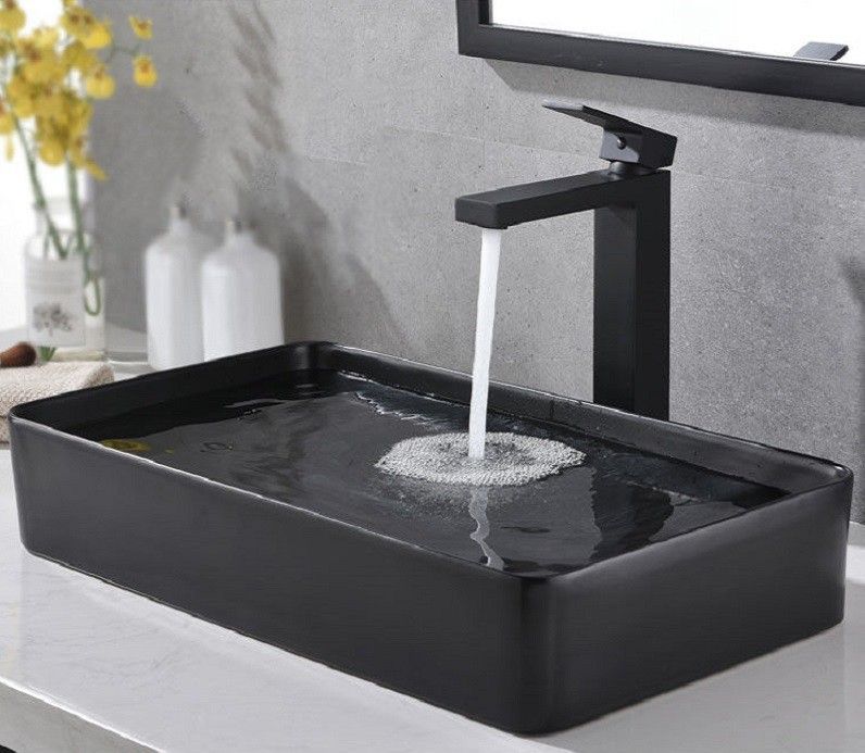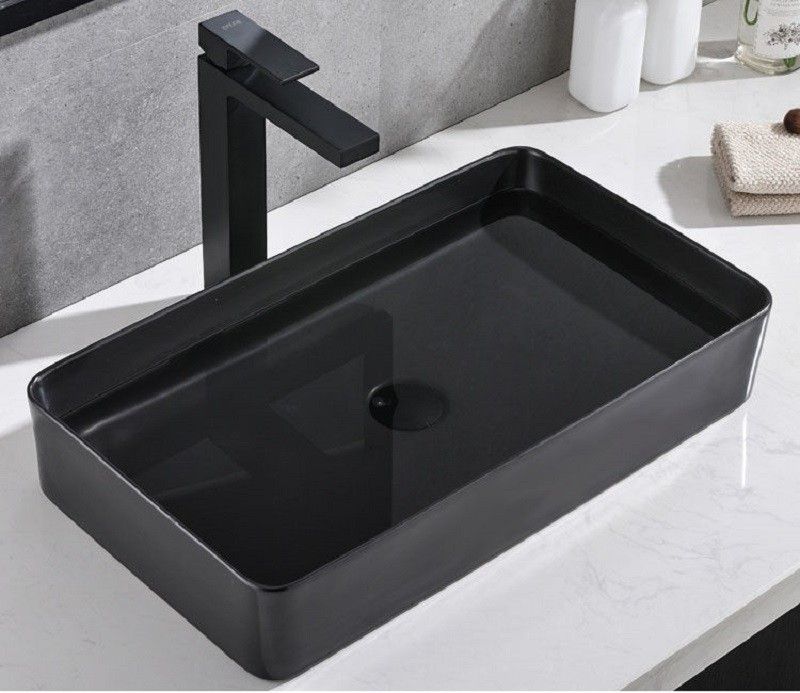Раковина CeramaLux 9396MB 60х40 накладная цвет черный без отверстий под смеситель