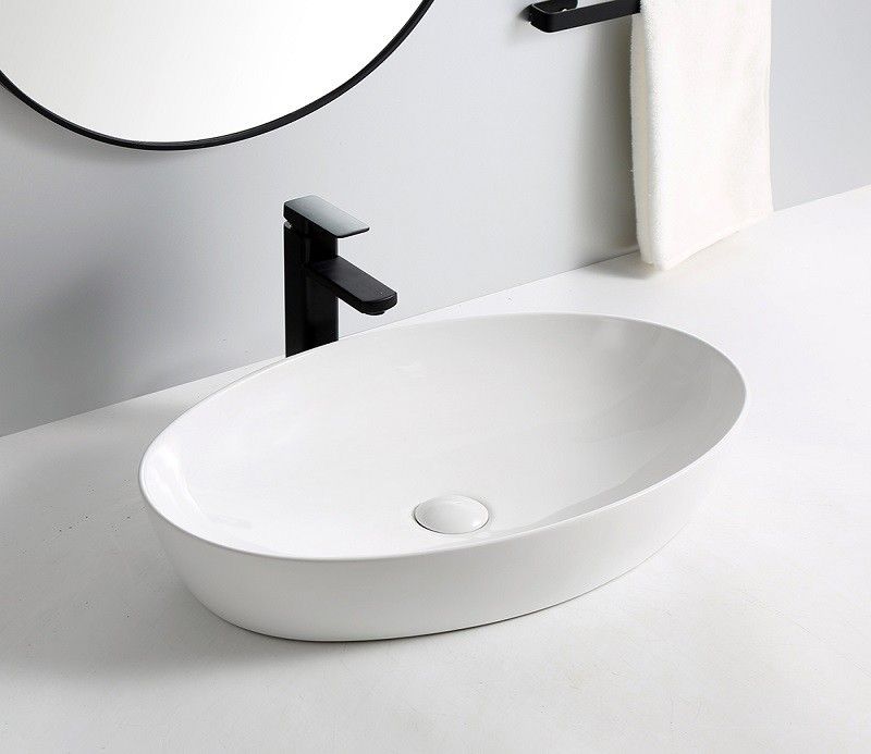 —Раковина из сантехнического фаянса CeramaLux 9433 60х40 накладная цвет белый без отверстий под смеситель