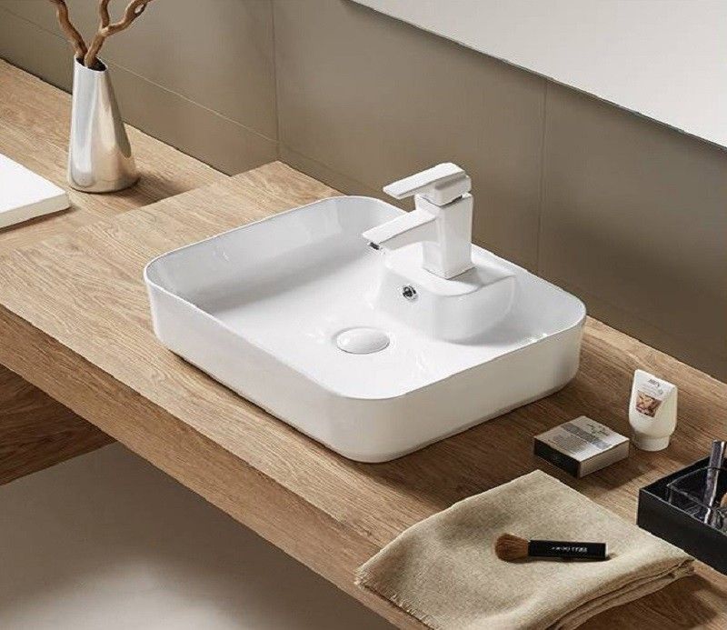 —Раковина из сантехнического фаянса CeramaLux 9445 50х40 накладная цвет белый 1 отверстие под смеситель