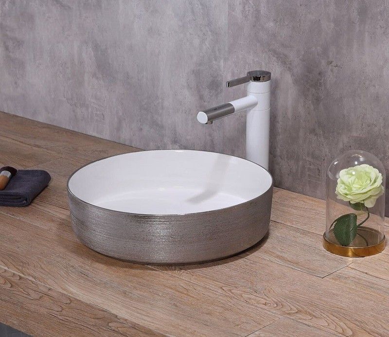 —Раковина из сантехнического фаянса CeramaLux C1054-1 40х40 накладная цвет хром без отверстий под смеситель