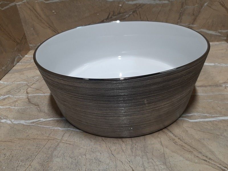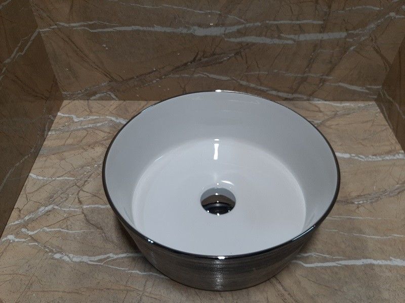 —Раковина из сантехнического фаянса CeramaLux C1054 40х40 накладная цвет хром без отверстий под смеситель