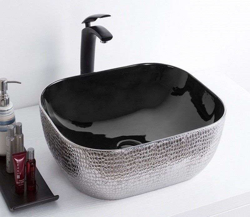 —Раковина из сантехнического фаянса CeramaLux D1302H020 50х40 накладная цвет хром без отверстий под смеситель