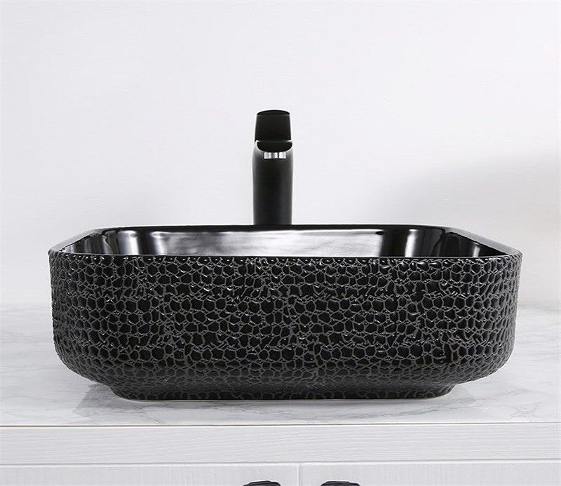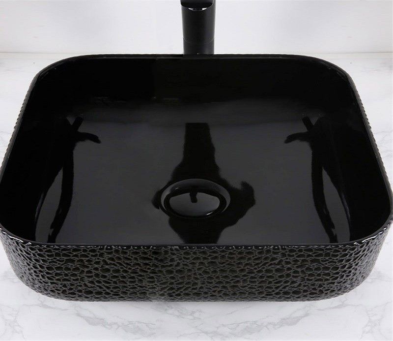 —Раковина из сантехнического фаянса CeramaLux D1303H004 40х40 накладная цвет черный без отверстий под смеситель