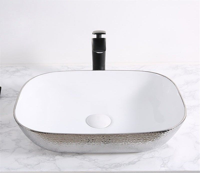—Раковина из сантехнического фаянса CeramaLux D1333H021 50х30 накладная цвет хром без отверстий под смеситель