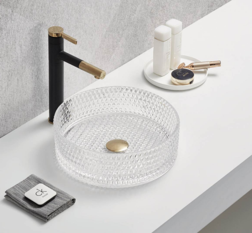 —Раковина стеклянная CeramaLux GL01 40х40 накладная цвет прозрачный без отверстий под смеситель