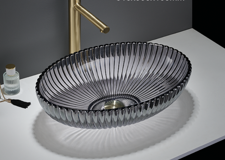 —Раковина стеклянная CeramaLux GL49A 50х40 накладная цвет серый без отверстий под смеситель