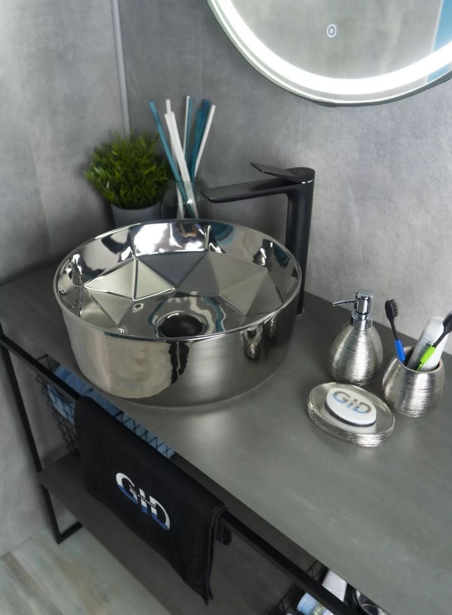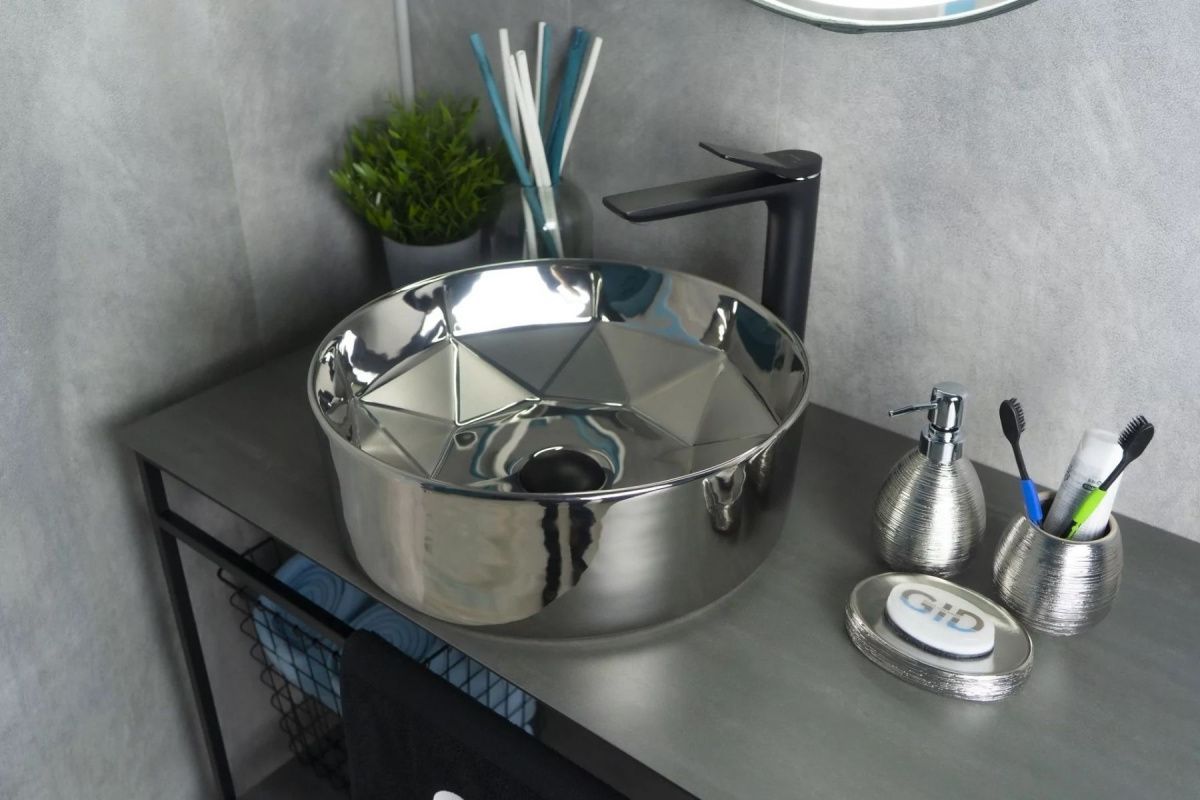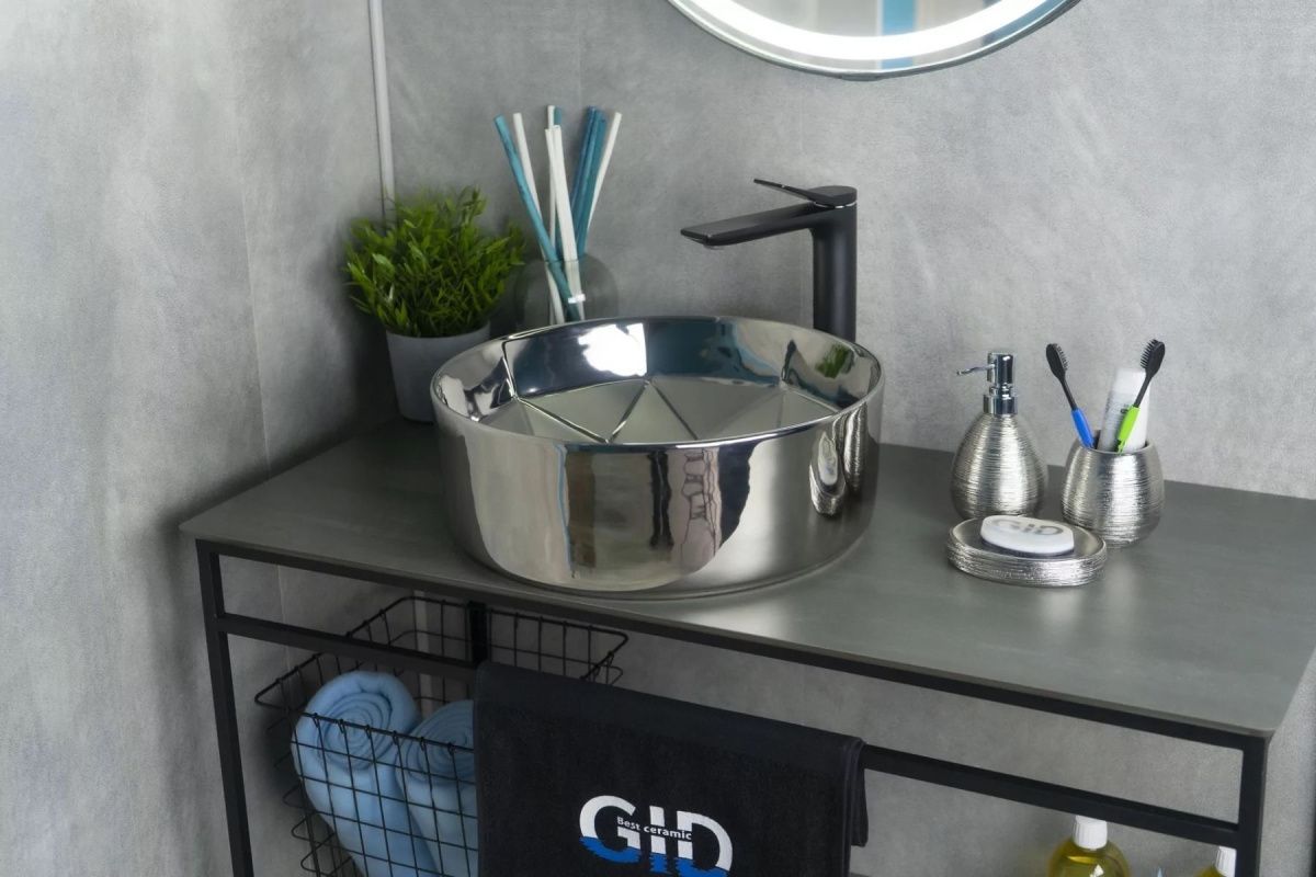 —Раковина керамическая Gid 53330 40х40 накладная цвет хром без отверстий под смеситель