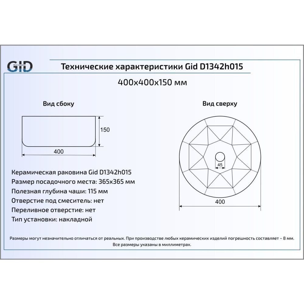 —Раковина керамическая Gid 53331 40х40 накладная цвет золото без отверстий под смеситель