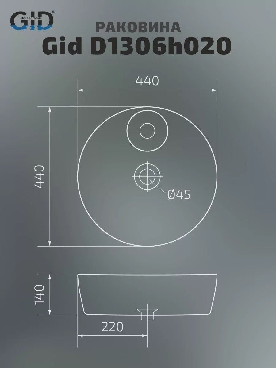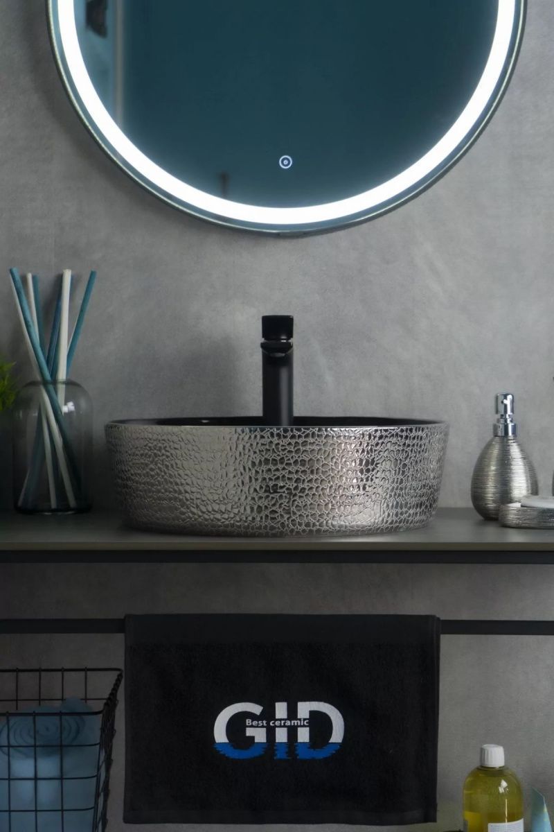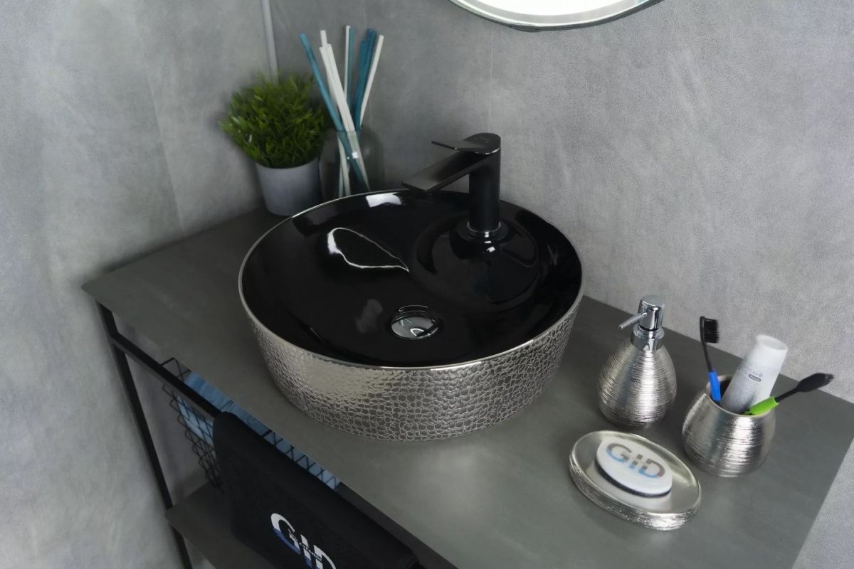 —Раковина керамическая Gid 53315 40х40 накладная цвет черный/серебро без отверстий под смеситель
